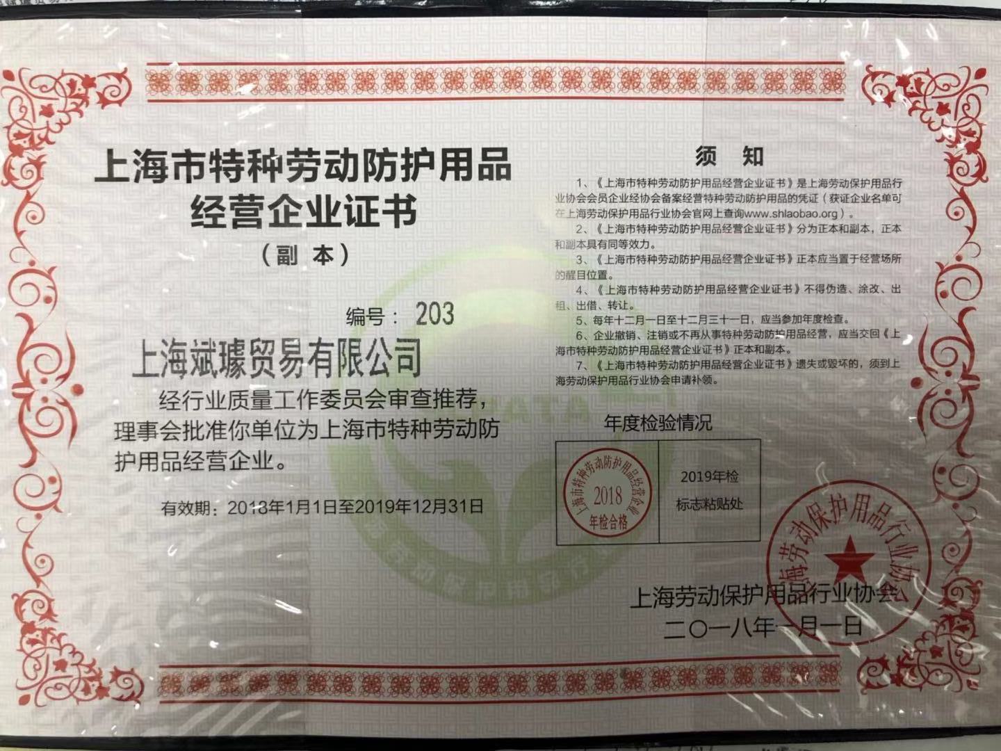 | 上海市特种劳动防护用品经营企业证书 | 上海市特种劳动防护用品经营企业证书 |